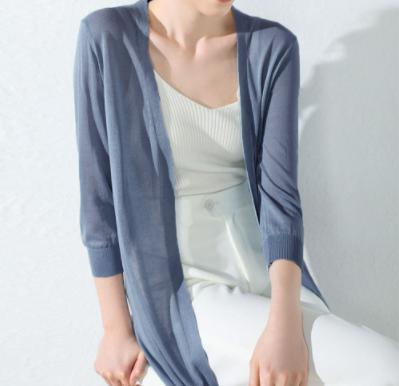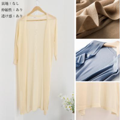 サイドスリット サマーニットアウター 冷房対策カーディガン シースルー 無地ガウン シンプル 韓国風 七分袖カーディガン 着回し アウター ロング丈 羽織り