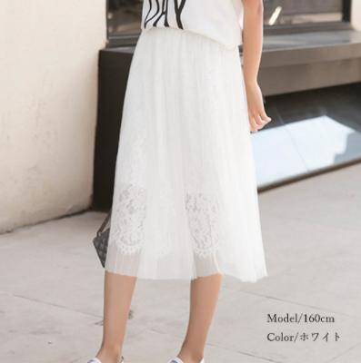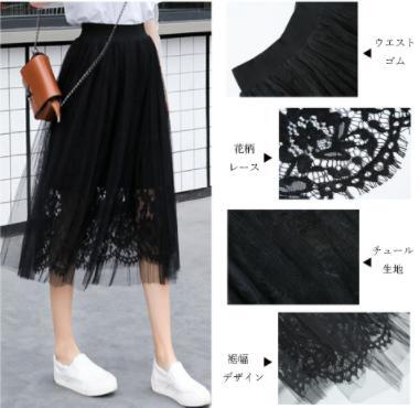 チュールと花柄レース2枚重なるフレアスカート