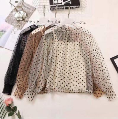 レディース キャミソール ブラウス 2点セット 透け感 トップス 春夏 ぽわん袖 おしゃれ ドット柄ブラウス ボリュームスリーブ フェミニンブラウス 水玉ブラウス 夏服