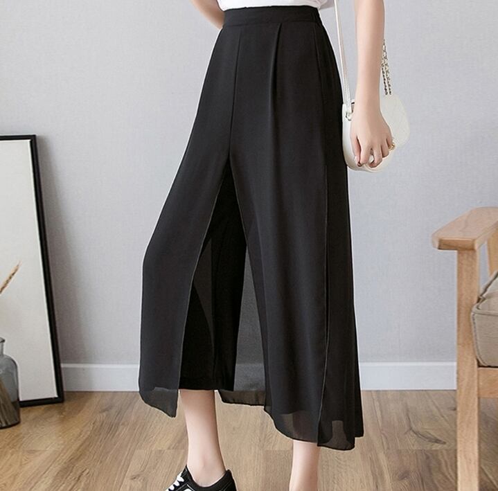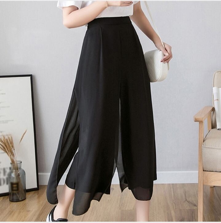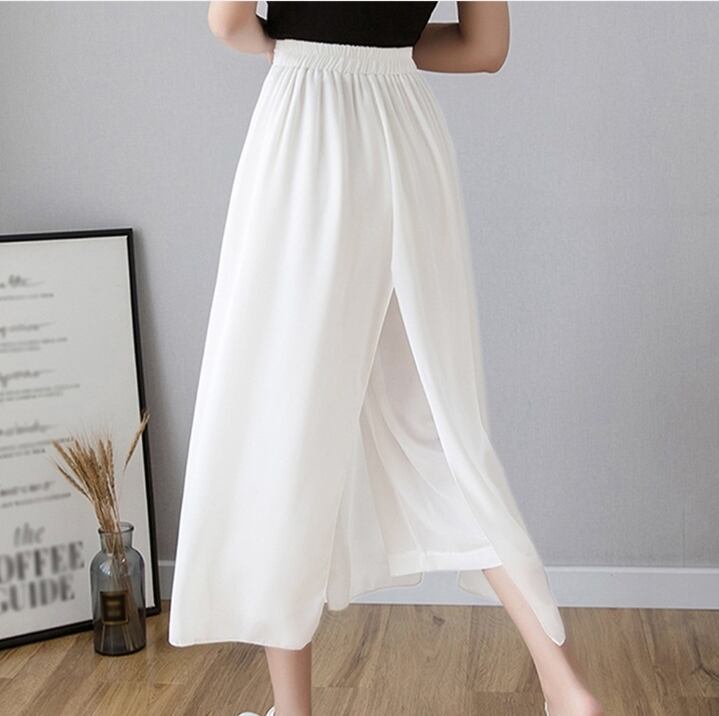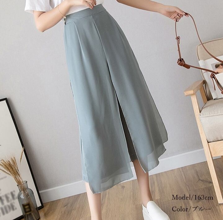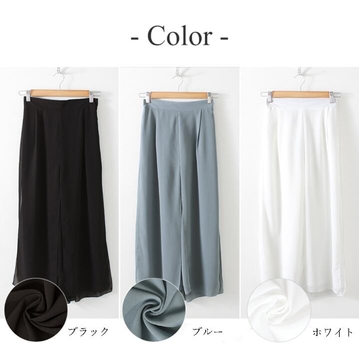 涼しげな素材感で爽やかな印象のワイドパンツ