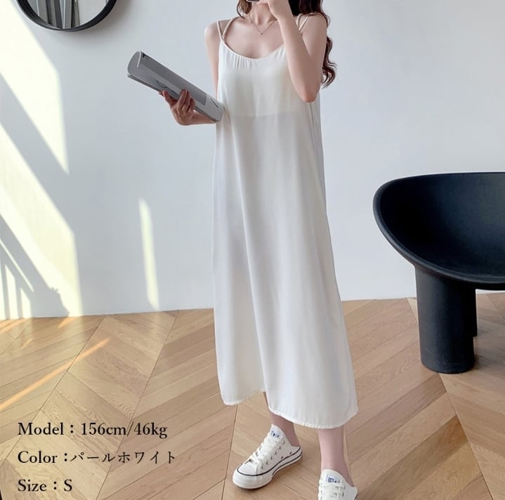 ワンピース背中見せ フェミニンリゾート インナーワンピ無地