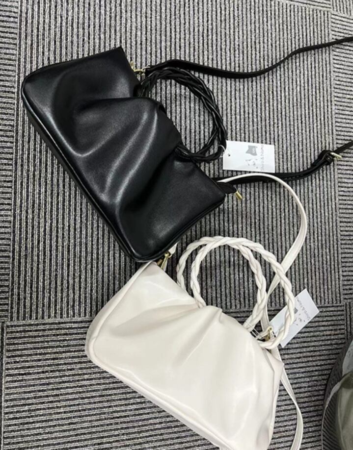 バッグの中央にふっくらと寄せたギャザーと編み込んだハンドルがエレガントな印象。上品さが漂う中にもこだわりのディティールが効いたデザインは、持つだけで女性らしさがUPするモテバッグ!