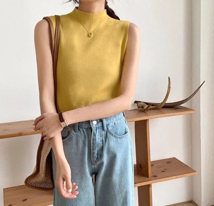レイヤードコーデに欠かせないノースリーブニットトップスです