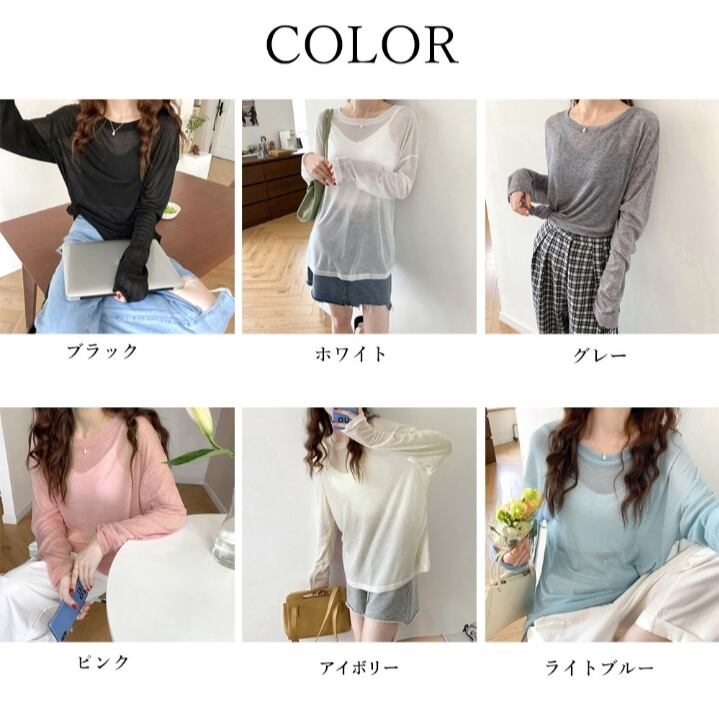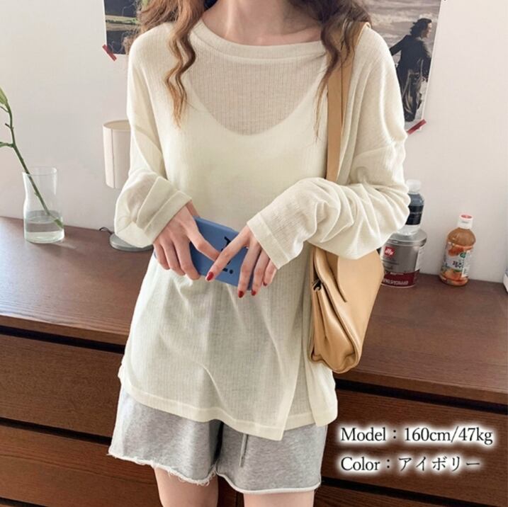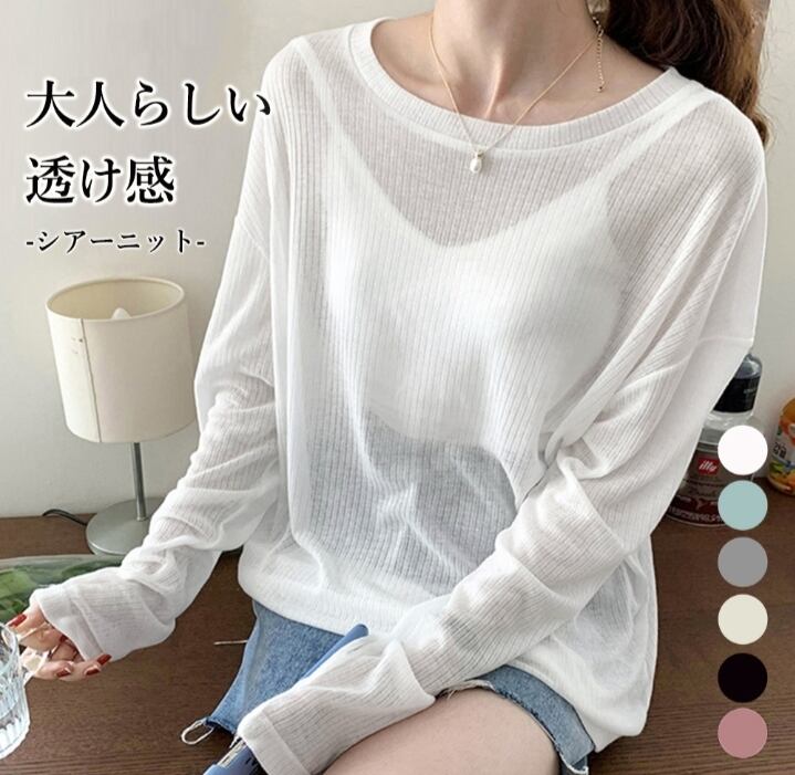 サマーニット プルオーバー ゆったり シースルートップス 冷房対策 透け カットソー韓国ファッション UV対策ブラウス