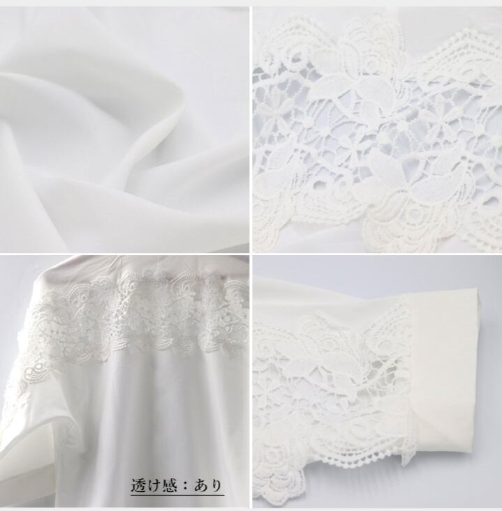 肩から袖まで透け感のある刺繍レースが、カジュアルな中にも可愛さをちょっぴりプラスしました
