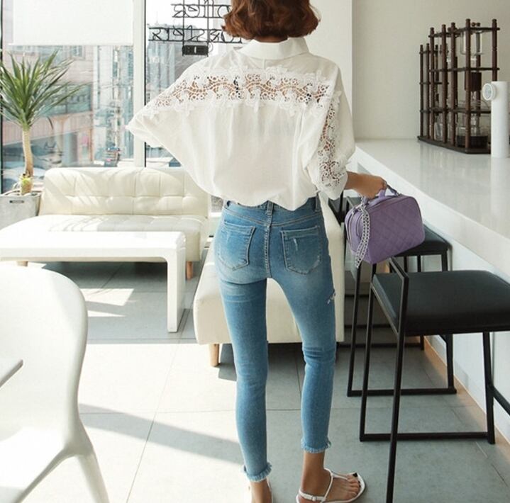 バックレースが涼しげで女性らしく可愛らしい印象のチュニックブラウス